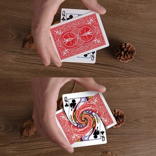 【回転させると2枚のカードが渦巻き状に混じりあうように見えるカードマジック】