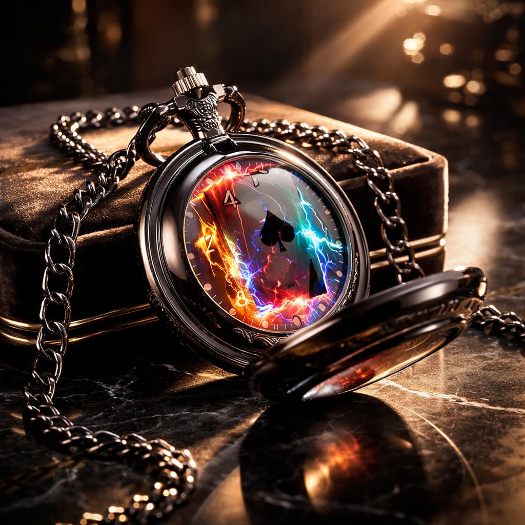 中でも今回特にオススメしたいのは、高級ブラッククオーツ懐中時計。カードマジシャン(カーディシャン)をイメージした神秘的なデザインのポケットウオッチです。ポケットからそっと取り出し、ワンタッチボタンでフタを開けて文字盤を見る一連の所作が美しいほど、マジシャンとしての魅力はアップします。そのためのマストアイテムとして、必ずあなたのお役に立ちます。