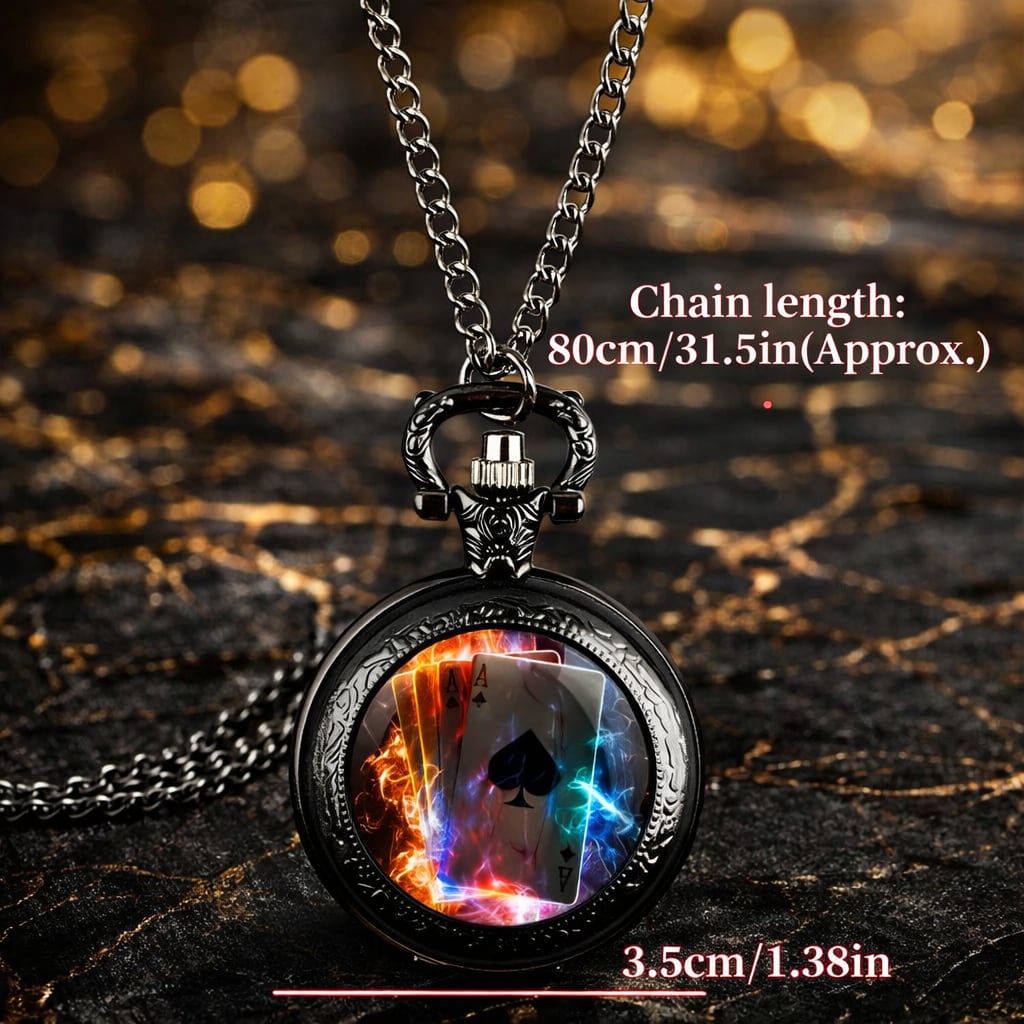 KB【高級ブラック クオーツ懐中時計】カーディシャン必携 トランプ柄 カードマジック仕様 クロースアップマジシャン用 ポケットウオッチ